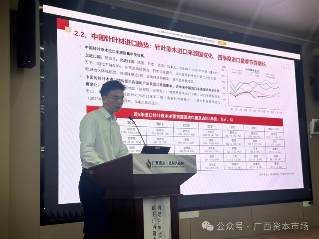 2024年11月28日下午,一场聚焦林业金融创新的盛会——“DCE·产业行广西原木期货交流会议”在广西资本市场服务基地圆满落下帷幕。本次会议由广西壮族自治区地方金融管理局(简称“自治区党委金融办”)、广西壮族自治区林业局携手大连商品交易所(简称“大商所”)共同指导,由广西证券期货基金业协会、广西资本市场发展促进会、广西北部湾股权交易所与中信期货联合主办。会议汇聚了来自政府金融监管部门、林业产业、主承方及其相关企业的50余位精英代表,共同就原木期货的创新应用与产业发展进行深入交流与探讨。广西作为中国林业大省,其林业产业在2023年实现了9569亿元人民币的总产值,人工林面积、木材产量及人造板产量均稳居全国榜首,依托丰富的自然资源,构建了完整的木材产业链条。然而,原木价格的波动性以及市场风险的有效管理,始终是制约林业企业发展的关键难题。原木期货的适时推出,为相关企业提供了有力的风险对冲工具,有效应对市场不确定性,显著提升了价格透明度与市场稳定性。自今年11月18日大商所正式推出原木期货合约以来,这一创新举措为广西等原木主产区的企业、种植户乃至整个行业带来了前所未有的发展机遇与风险保障。会议期间,与会代表围绕原木期货的市场运作机制、定价模式及其在风险管理中的实际应用展开了深度对话,分享了对市场趋势的洞察、价格波动分析及风险对冲策略的智慧结晶。自治区党委金融办资本市场处负责人在致辞中表示,原木期货和期权的成功上市,标志着我国期货市场发展进入新阶段。这一金融创新工具不仅为产业链上的企业提供了高效的价格风险对冲手段,更为行业的稳健发展与高质量跃升注入了强劲动能。广西作为全国重要的原木生产基地,具备丰富的林业资源和良好的产业基础,原木期货的推出为广西林业产业带来了新的发展机遇。该负责人同时表示,近年来广西积极推动金融服务实体经济,特别在大宗商品领域的探索,力求树立金融工具赋能实体经济的典范。未来,广西将加大力度普及原木期货知识,促进金融与产业的深度融合,优化金融服务环境,强化风险防控体系,确保金融安全稳健运行,为广西林业行业的高质量发展提供坚实支撑。会议期间,三位行业专家的精彩分享为与会者带来了深刻启示。中信期货研究所农业组研究员周重廷首先详细阐述了原木期货的合规规则与定价框架,为与会者构建了操作原木期货的理论基石。随后,湖北福汉木业国际贸易有限公司常务副总经理杨隽结合实际案例,分享了原木期货在产业企业经营与风险管理中的实践应用,展示了期货市场在对冲价格波动风险、优化企业经营策略方面的独特价值。最后,浙江物产森华集团有限公司副总经理章蕊群女士通过对中国针叶材市场变化的深入分析,着重讲解了交易中的难点与痛点,助力企业精准把握市场趋势,提升在复杂多变市场环境中的竞争力。此次会议的成功举办,不仅加深了行业对原木期货市场的认知与理解,更为广西林业产业的现代化、标准化发展注入了新的活力。与会专家一致表示,原木期货的推出将进一步完善产业链上下游的价格体系,为林业产业的高质量发展、产业融合与创新注入强劲动能,开启产业升级的新篇章。下一步,广西证券期货基金业协会将在广西证监局的指导下,继续积极开展资本市场创新业务培训工作,宣传普及资本市场知识,不断推动广西资本市场高质量发展。