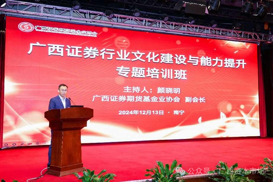 为推动辖区证券期货经营机构深入学习贯彻党的二十届三中全会精神,全面落实广西证监局关于证券基金行业文化建设的工作部署要求,切实提升从业人员的专业素养和职业道德,12月13日,广西证券期货基金业协会(以下简称“协会”)于南宁成功举办证券行业文化建设与能力提升专题培训班。培训班邀请了广西证监局机构监管处副处长李倩女士、湖南省证券业协会常务副会长兼秘书长刘丹岳先生、兴业证券数智金融部总监高文彬先生等领导专家现场授课,辖区各证券期货机构负责人及合规管理人员200余名精英现场参与。协会领导主持培训活动。培训伊始,协会领导在开班致辞中阐述了行业文化建设对证券期货机构发展的重要意义,通报近期在广西证监局指导下协会围绕“合规、诚信、专业、稳健”这一行业文化核心价值观所开展的一系列活动及取得的成果。呼吁各会员单位要把行业文化建设融入日常、融入经营,以实际行动践行文化理念,共同推动行业文化的繁荣发展,为行业高质量发展贡献力量。培训课程精心策划,实现了行业自律与证券监管的深度融合。首先,李倩副处长以日常监管中的常见问题为切入点,结合投诉举报的真实案例,深刻剖析了当前广西证券期货行业文化建设的现状与挑战,着重强调了行业纠纷诉源治理的紧迫性与重要性。同时强调,行业机构需切实承担起主体责任,加强内部管理,深化合规意识,不断提升从业人员的职业素养与道德水准。随后,刘丹岳会长围绕如何有效推进辖区行业文化建设这一主题,结合湖南省的实践经验与典型案例,从打造投资者教育基地、开展多元化活动、构建全面课程体系、深化课题研究、树立行业标杆等多个维度,为参会者提供了构建具有证券期货行业特色的文化体系的宝贵思路。最后,高文彬总监针对客户投诉最为集中的几类问题,结合生动案例,深入分析了行业矛盾纠纷的现状、根源及发展趋势,并分享了高效治理策略与投诉处理技巧,为提升行业服务品质与客户满意度提供了有力支撑。三位领导老师的精彩讲授赢得了参会者的广泛赞誉与高度评价。下一步,协会将在广西证监局的指导下,坚定不移地推进行业文化建设工作,深化从业人员的合规理念,积极营造行业健康发展的良好氛围,以更加精准高效的工作举措,为辖区资本市场的健康平稳运行与高质量发展注入强劲动力。
